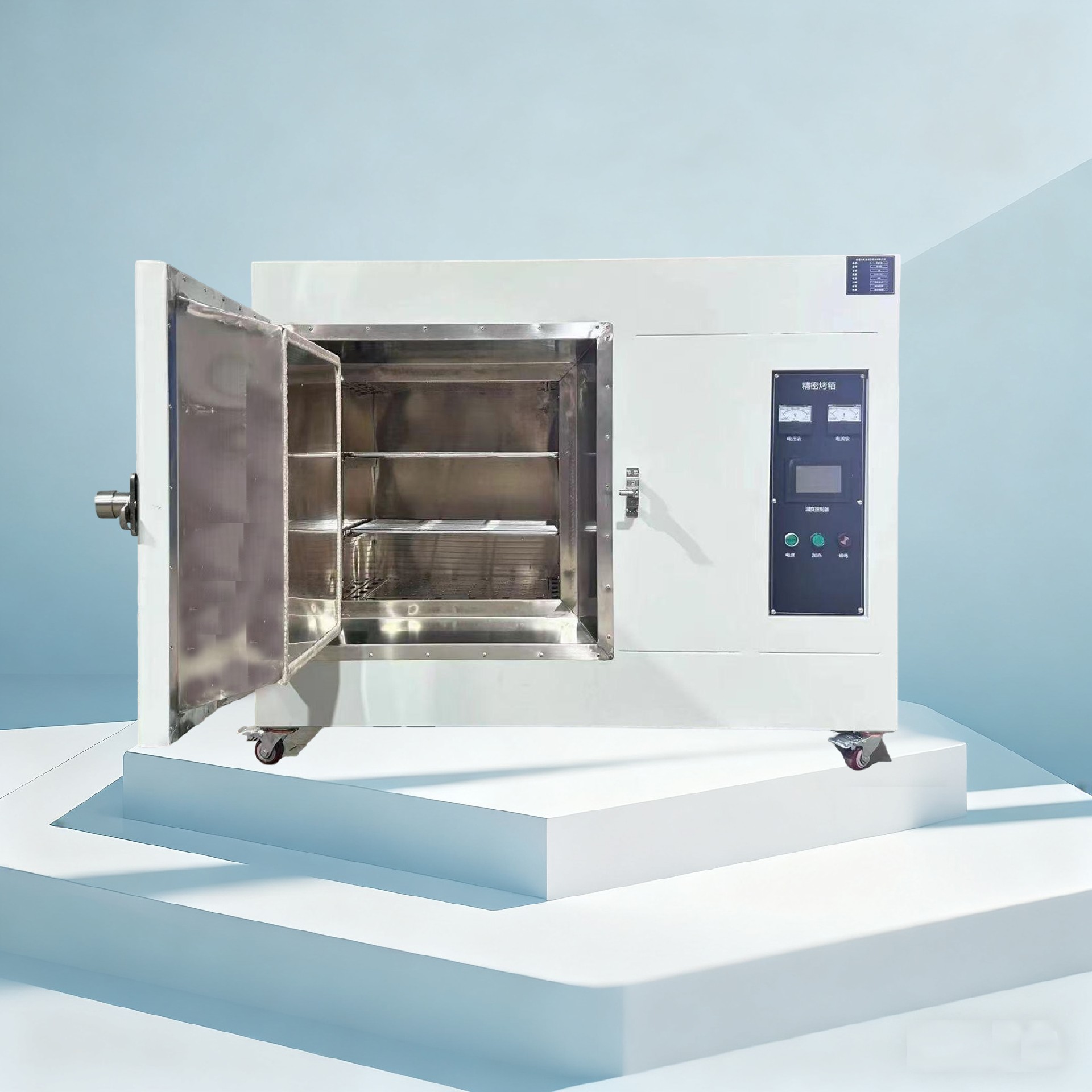實(shí)驗(yàn)室樣品類型多樣(固體、液體、腐蝕性、易揮發(fā)等),烘干箱的結(jié)構(gòu)設(shè)計(jì)需兼顧 “樣品兼容性”“清潔便利性” 和 “防污染”。